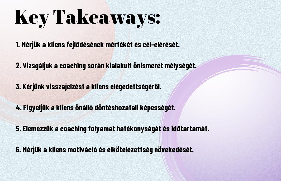 - Az ügyfél elégedettsége és a jövőbeni teljesítményének javulása szintén mérvadó mutatók a coach hatékonyságának megítélésében.
