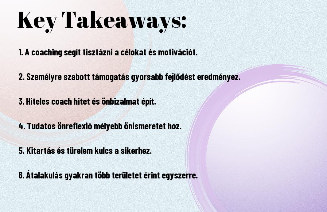 A coaching folyamat egy struktúrált megközelítést kínál a személyes fejlődés érdekében. Ahogy én is tapasztaltam, a fázisok – a célkitűzés, tervezés és a változás fenntartása – együttesen működnek, hogy támogassanak minket a kihívások leküzdésében. Minden lépés során fontos, hogy *nyitottak* és *elkötelezettek* legyünk, hiszen ez is hozzájárul a sikeres átalakuláshoz.