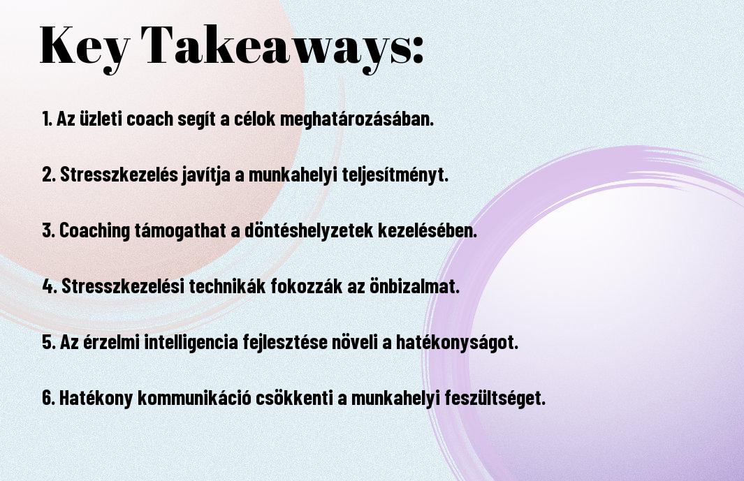 - A stresszkezelési technikák integrálása az üzleti coachingba hozzájárulhat a jobb teljesítményhez és a hosszú távú sikerhez az üzleti életben.